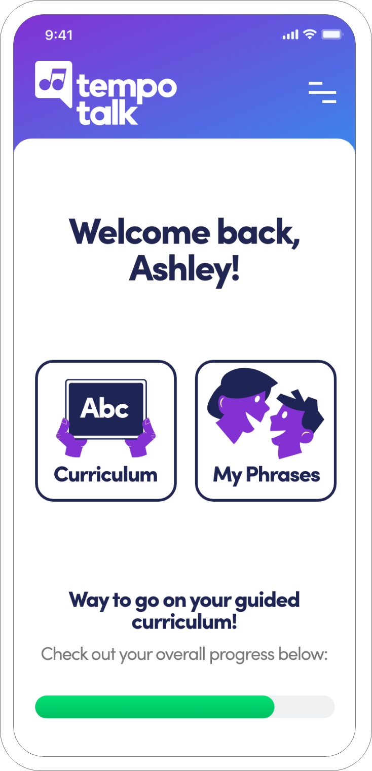 Parents and caregivers don’t need any knowledge of speech therapy processes. Tempo Talk handles everything from lesson progression to results tracking for you!